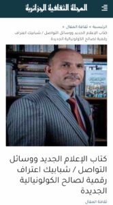 المجلة الثقافية الجزائرية تتناول خبر صدور كتاب جديد للأستاذ الدكتور محمد كريم الساعدي