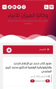 موقع الراصد نيوز يتناول خبر صدور كتاب الإعلام الجديد أداة كولونيالية للدكتور محمد كريم الساعدي