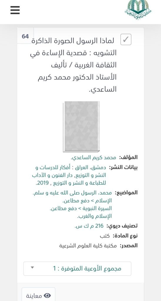 كتاب لماذا الرسول؟ الصورة، الذاكرة، التشويه قصدية الإساءة في الثقافة الغربية أحد مؤلفات الأستاذ الدكتور محمد كريم الساعدي يتوفر بنسخته الإلكترونية في